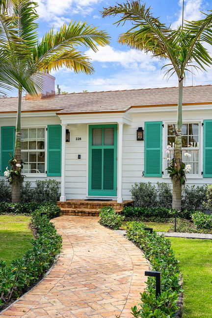 This charming colonial cottage received an interior renovation with a rear addition for a new master suite. This renovation emphasized the beautiful historic details creating rich character while creating a palm beach vibe with fun colors and patterns throughout!
